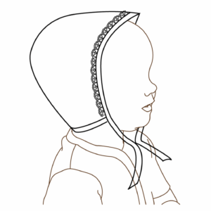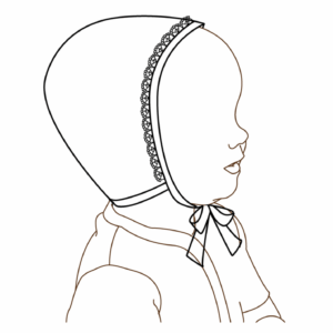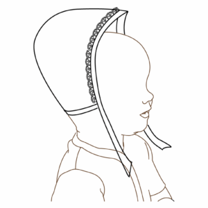 1. Put the hood above the face of your baby, make sure the ribbons are below the chin.